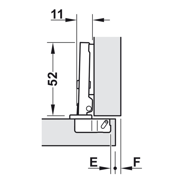 Dimensions : See options (offset) For door thickness 12 to 22mm 25mm Ø cup Drill pattern 38/7.5