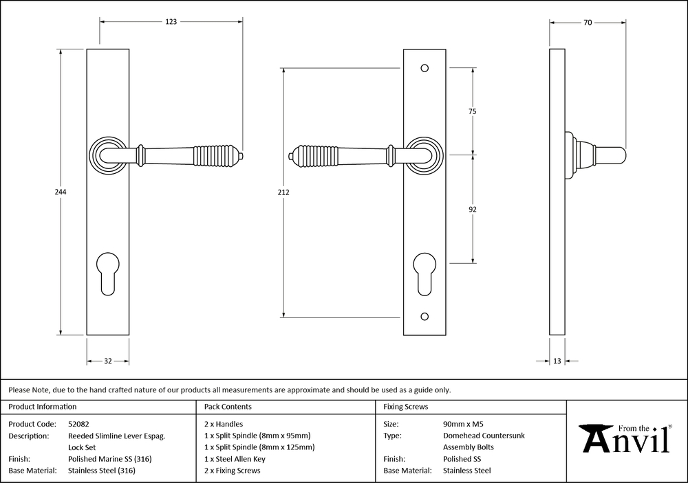 This Reeded set features a classic Regency-style end that is well suited to traditional and contemporary settings alike. The reeded part of the handle accentuates the hand finishing carried out by our expert craftsmen. A perfect design choice for any home, with many matching products available. This handle has a strong double spring incorporated into its stylish boss design which provides both elegance and practicality. Lever handle for external doors where multi-point locking is required. Set includes an internal and external lever espag lock handle. Suitable for use with a multi-point lock or French door kit in conjunction with a Euro cylinder. Supplied with matching SS bolt through fixings.