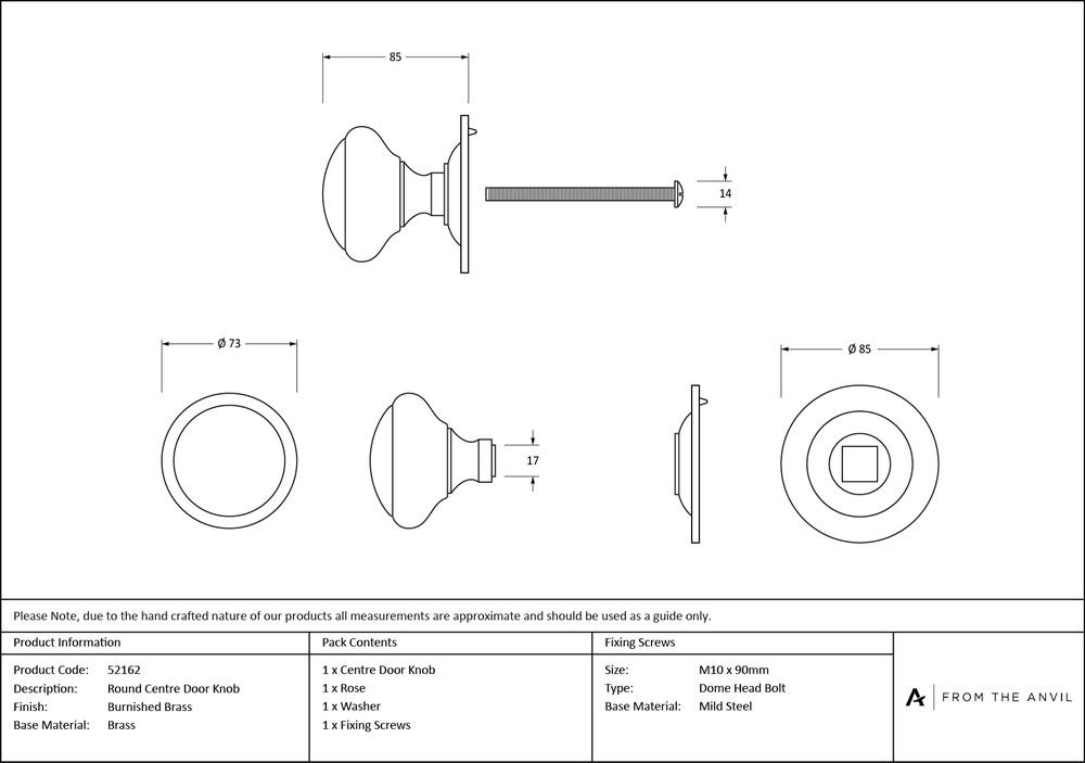 Our vast collection of centre door knobs can be used for a variety of properties from country cottages to town houses to period dwellings. These Round centre door knobs are forged from solid brass and hand finished by our expert craftsmen. A perfect design choice for any home, with many matching products available. Designed to match our Round mortice/knob sets. Our centre door knobs are equipped with a location pin on the rose to prevent any unwanted movement during the life of your product. Supplied with a M10 x 90mm dome headed bolt for bolt-through fixing.