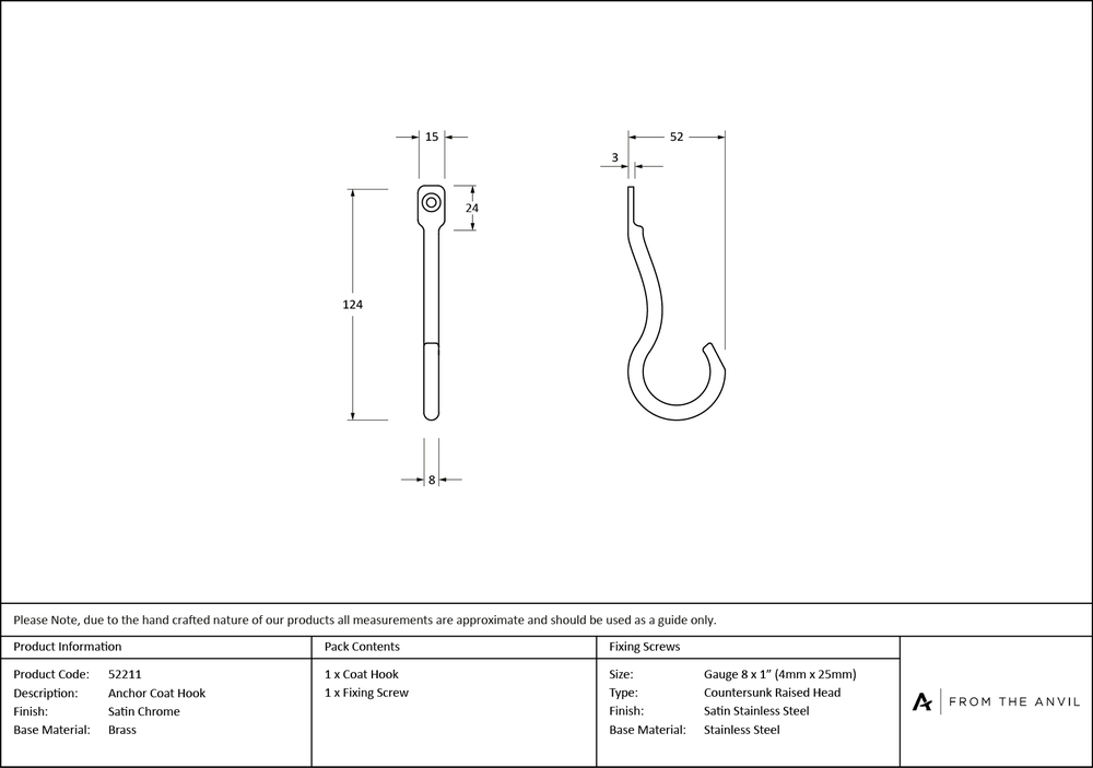 Our large and varied collection of hooks add character and charm to any project or property. An accessory that's both purposeful and decorative. This hook takes inspration from nautical design and features a rounded hook end synonymous with that of an anchor. Our hat & coat hook is forged from solid brass which emphasises the high quality materials and manufacturing techniques used. A perfect design choice for internal doors with many matching products available. Can be used as a single item or grouped together with different styles to create a feature. Available in a range of our best selling finishes to enable cohesion when paired with other products from our range. Supplied with matching SS wood screw.