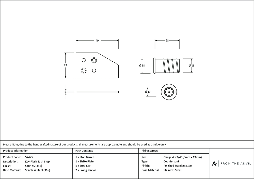 Stop Barrel : 28 x 16mm Striker Plate : 49 x 29mm