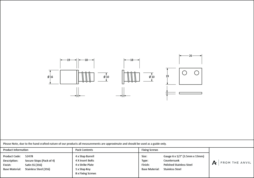 Insert Diameter : 10mm Stop Projection : 19mm Strike Plate : 26 x 19 x 2mm