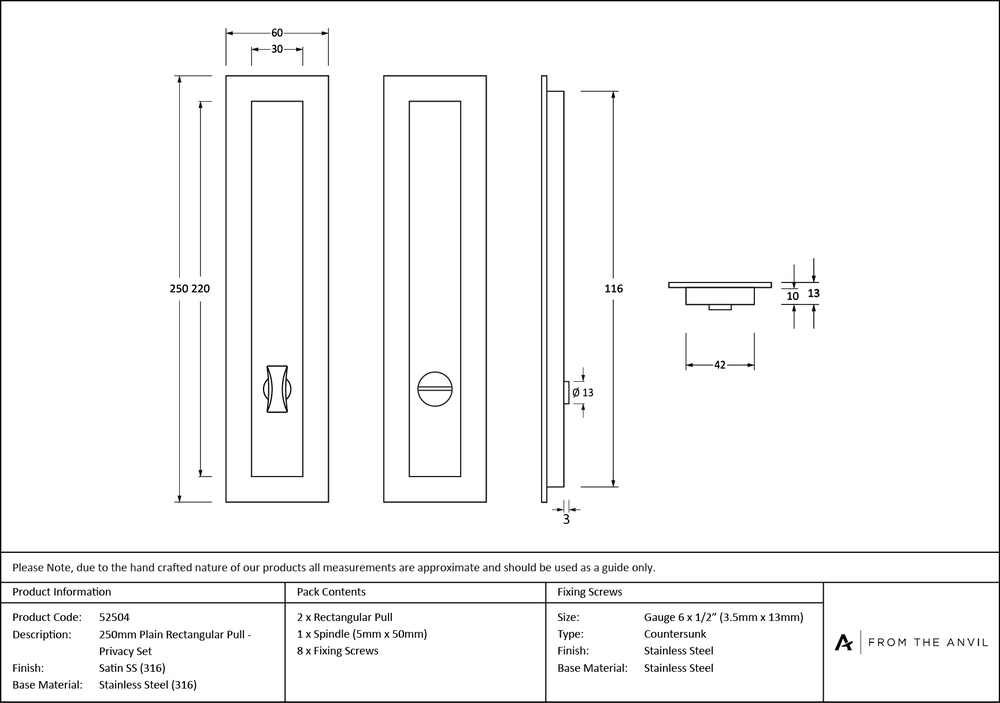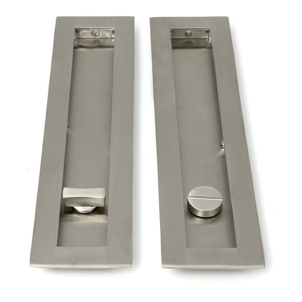 Our range of sliding door furniture is suitable for all sliding, pocket, and flush door systems. The Plain design matches a number of other products in the range. Maximum door thickness: 45mm. Longer thumbturn spindles available on request. Minimum door thickness: 35mm. Set includes 2 Rectangular pull handles and coin and release thumbturn. Can be used with a sliding door lock. Available in two sizes. Supplied with matching SS wood screws.