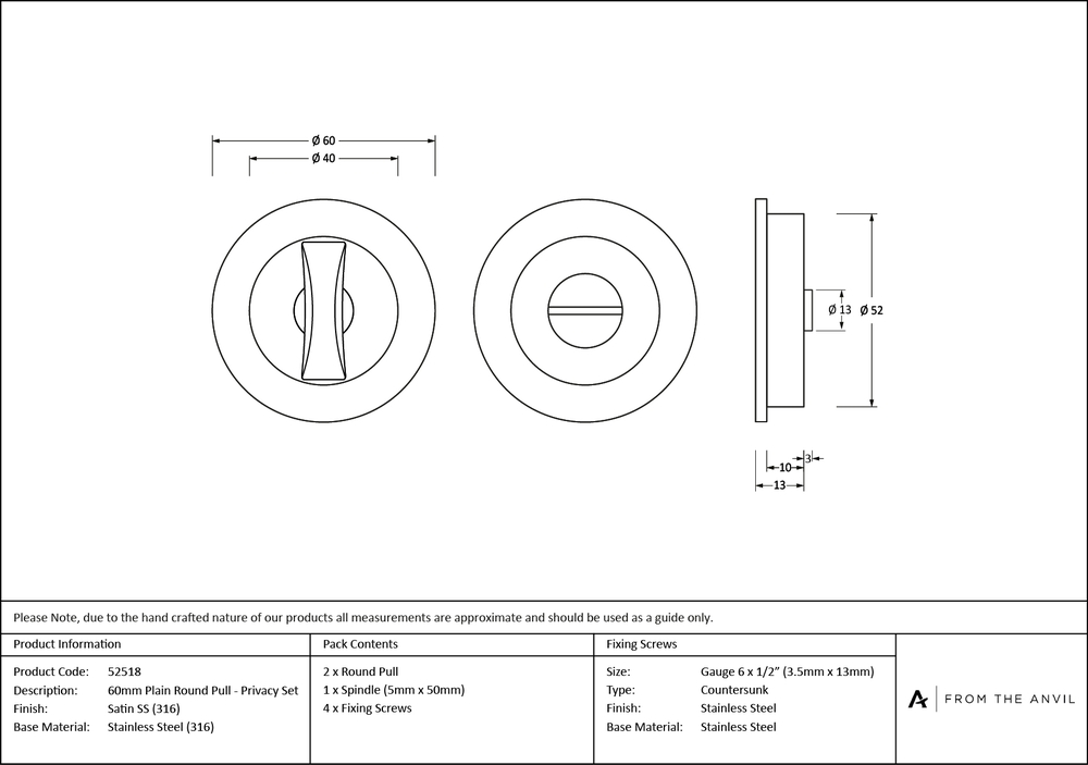 Our range of sliding door furniture is suitable for all sliding, pocket, and flush door systems. The Plain design matches a number of other products in the range. Maximum door thickness: 45mm. Longer thumbturn spindles available on request. Minimum door thickness: 35mm. Set includes 2 Round pull handles and coin and release thumbturn. Can be used with a sliding door lock. Available in two sizes. Supplied with matching SS wood screws.
