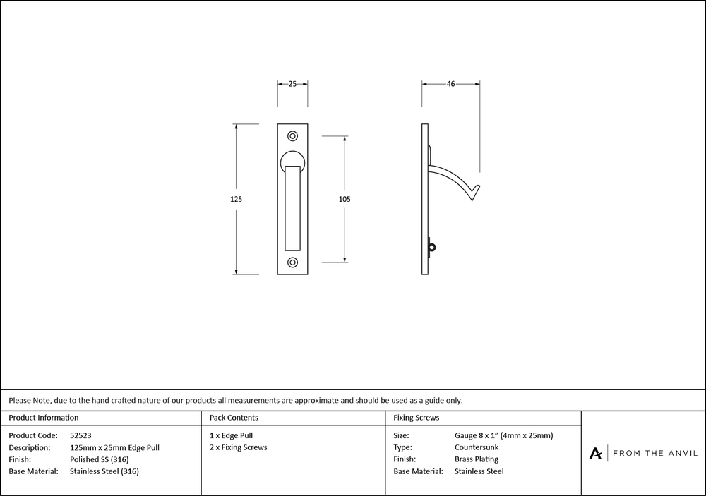 Edge pulls are morticed into the edge of the door to allow sliding or pocket doors to be pulled closed. The finger pull section retracts back into the faceplate on a simple spring to allow your door to fully close. Designed to match the other sliding door furniture in the range. Sold in singles. Supplied with matching SS wood screws.