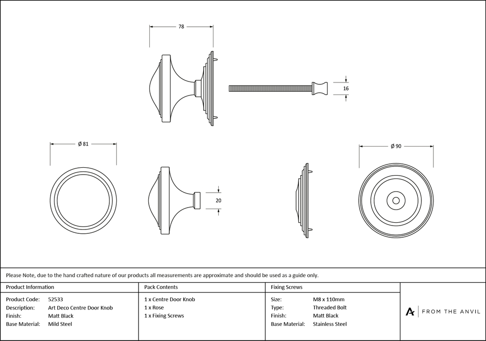 Our vast collection of centre door knobs can be used for a variety of properties from country cottages to town houses to period dwellings. Our weighty Art Deco range is forged from mild steel, which exhibits the high-quality materials used to create this centre door knob. A perfect design choice for external doors, with many matching products available. Combine with our matching Art Deco door furniture to create a feature entrance. Our centre door knobs are equipped with a location pin on the rose to prevent any unwanted movement during the life of your product. Supplied with an M8 x 110mm stainless steel threaded bolt for bolt-through fixing.