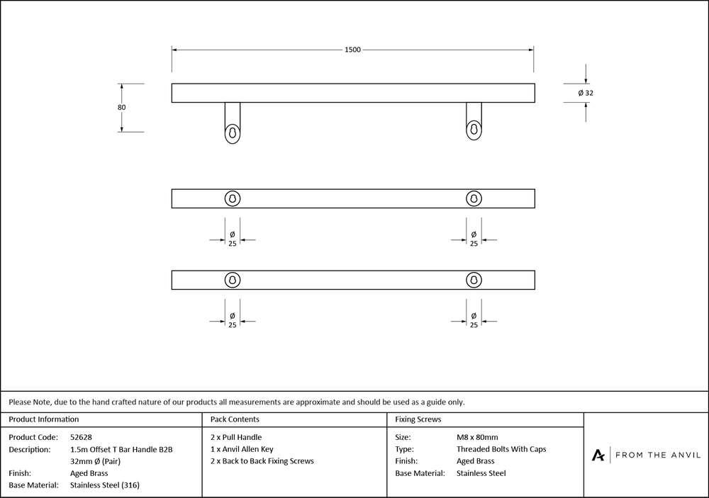 Overall Length : 1500mm Diameter : 32mm Fixing Centre : 1300mm Projection : 80mm