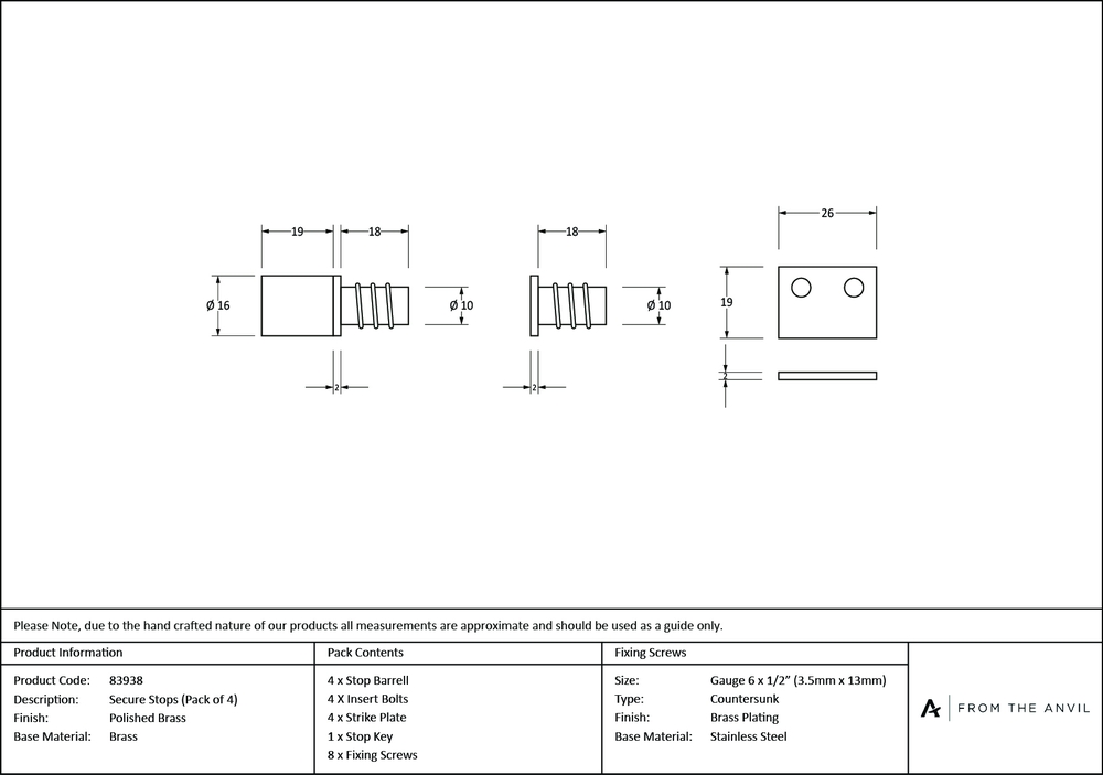Insert Diameter : 10mm Stop Projection : 19mm Strike Plate : 26 x 19 x 2mm