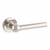 The Alexander and Wilks Siskin door handle features a modern plain barrel lever with a round bulb stem, finished with a plain round rose.