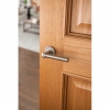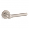 The Alexander and Wilks Siskin door handle features a modern plain barrel lever with a round bulb stem, finished with a plain round rose.