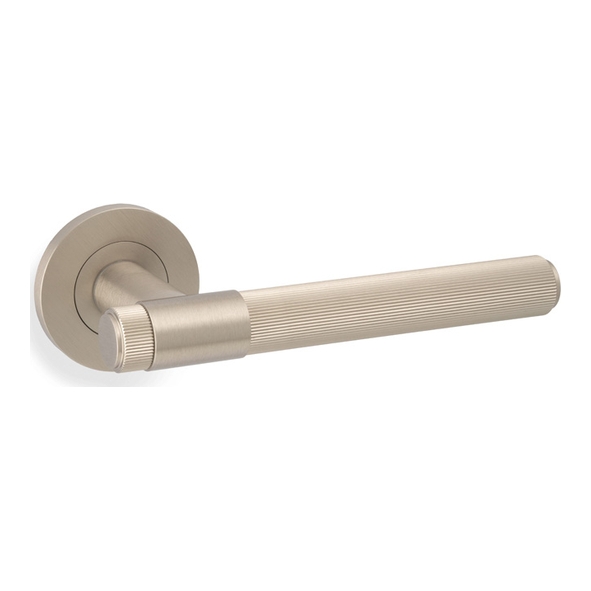 AW242SNPVD • Satin Nickel • Alexander & Wilks Kingston Reeded Levers On Round Roses