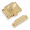 The Alexander & Wilks solid brass cupboard latch has an oval turn, with matching raised-head screws. This cupboard latch offers exceptional durability and corrosion resistance, further enhanced by its PVD coating. The use of brass provides a timeless aesthetic, elevating the appearance of any cupboard with its warm, classic, or vintage appeal, complementing both traditional and modern design styles. The latch's sprung action ensures smooth, reliable operation, while requiring minimal maintenance. These features make solid brass cupboard latches both functional and visually striking, contributing to lasting quality and style.