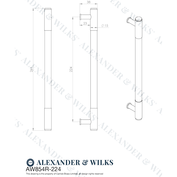 AW854R-224-DBZPVD • 224mm c/c • Dark Bronze • Alexander & Wilks Washington Reeded T-Bar Cabinet Handle Finish