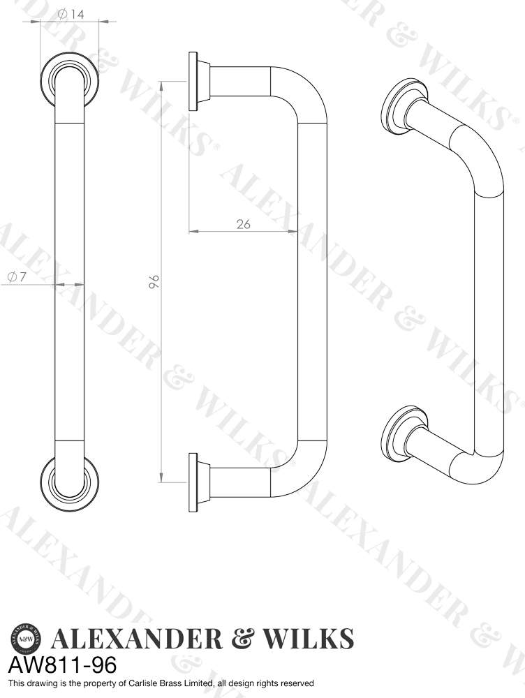 AW811-96-PC • 07mm Ø x 096mm c/c • Polished Chrome • Alexander & Wilks Scandi D Cabinet Pull