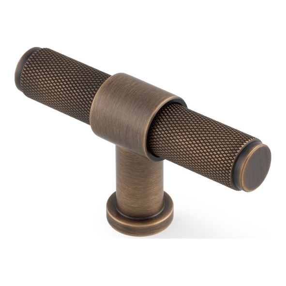 AW838-80-AB • 80mm • Antique Brass • Alexander & Wilks Kingston Knurled T-Bar Cabinet Knob