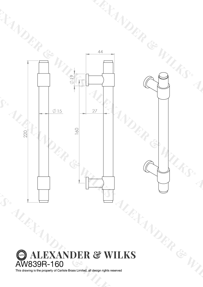 AW839R-160-BL • 160mm c/c • Black • Alexander & Wilks Kingston Reeded Cabinet Pull