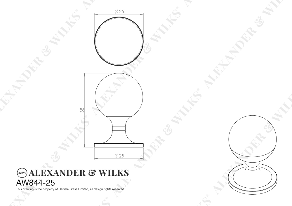 AW844-25-PC • 25mm • Polished Chrome • Alexander & Wilks Plain Ceasar Cabinet Knob