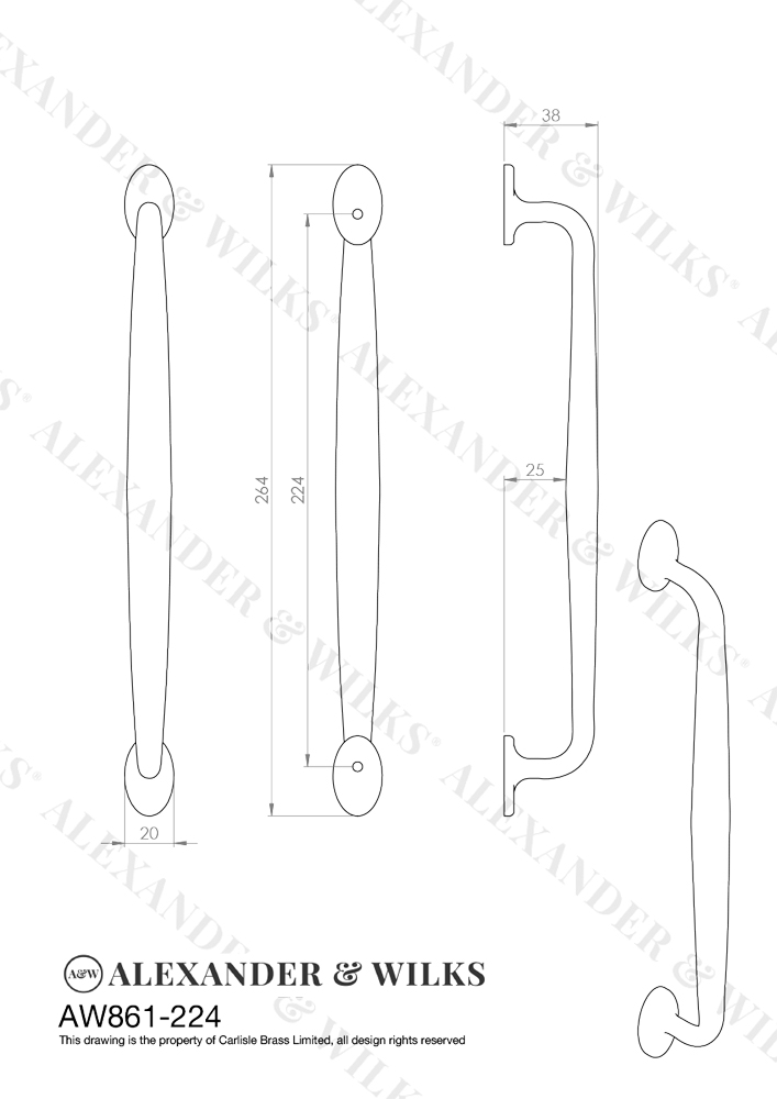 AW861-224-PC • 224mm c/c • Polished Chrome • Alexander & Wilks Ashbury Cabinet Pull