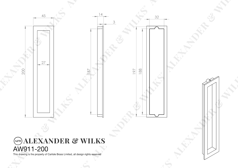 AW911-200-PC • 200mm • Polished Chrome • Alexander & Wilks Rectangular Flush Pull