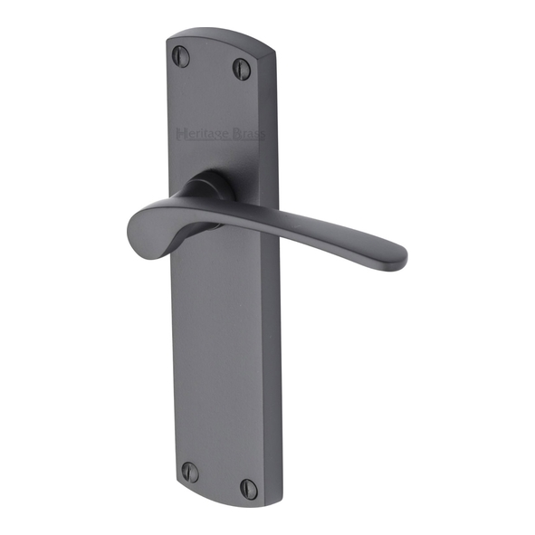 DIP7810-BKMT • Long Plate Latch • Matt Black • Heritage Brass Diplomat Levers On Backplates