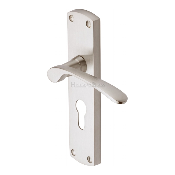 DIP7848-SN • Euro Cylinder [47.5mm] • Satin Nickel • Heritage Brass Diplomat Levers On Backplates