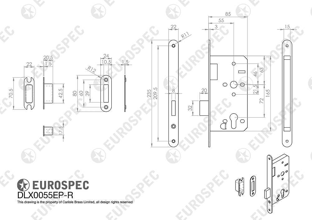 DLX0055EPSSS/R • 085mm [055mm] • Satin Stainless • Radiused • Contract Euro Standard Deadlock Case