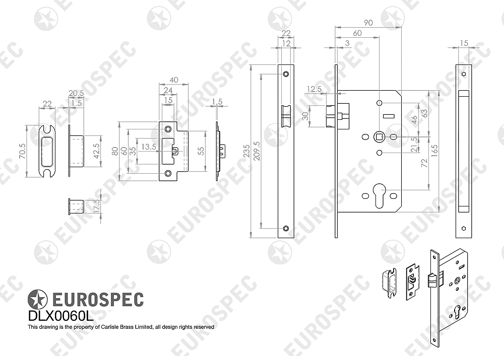 DLX0060LSSS • 090mm [060mm] • Satin Stainless • Square • Contract Euro Standard Latch