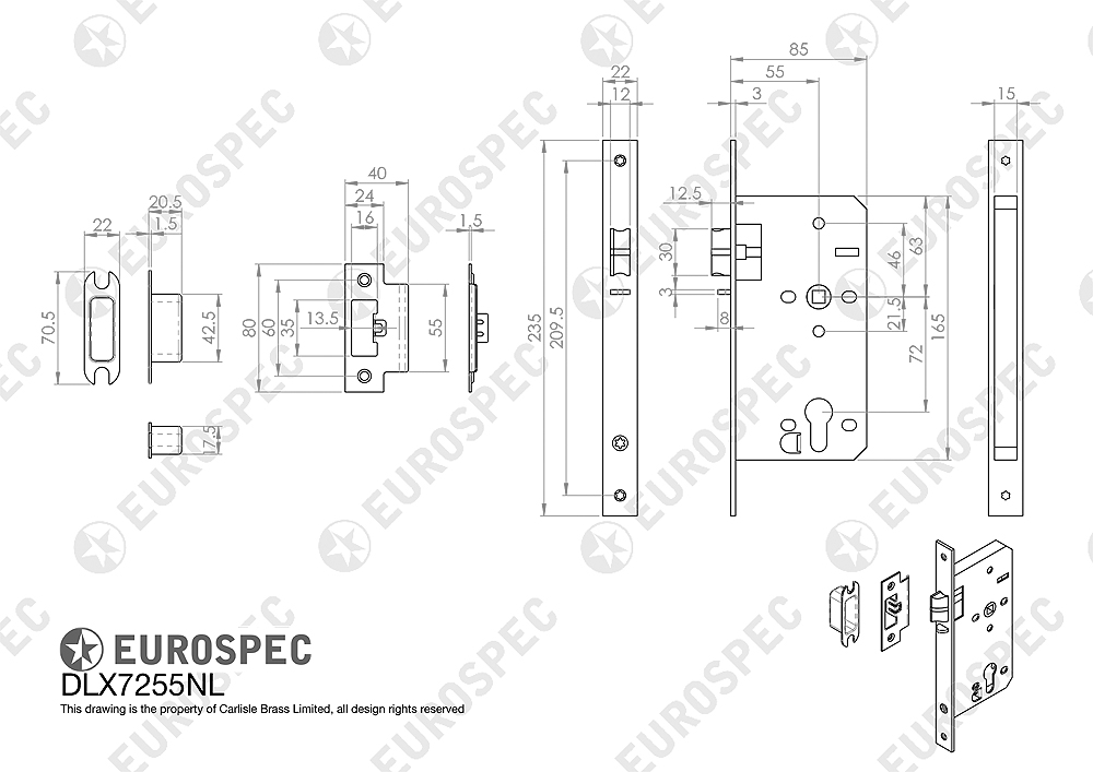 Operation : The latch bolt is withdrawn by a lever or knob handle internally and by a euro cylinder (not included) externally Locks automatically upon closing with the latch bolt being deadlocked by the anti-thrust mechanism