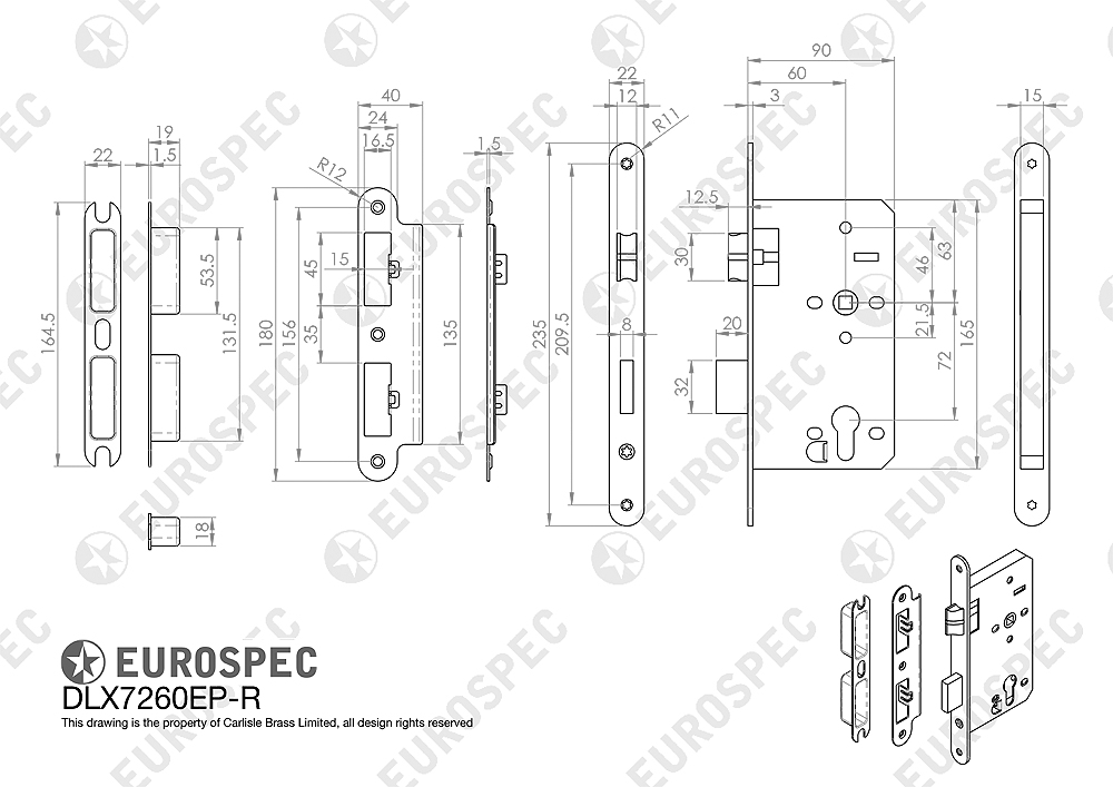 DLX7260EPSSS/R • 090mm [060mm] • Satin Stainless • Radiused • Contract Euro Standard Sashlock Case