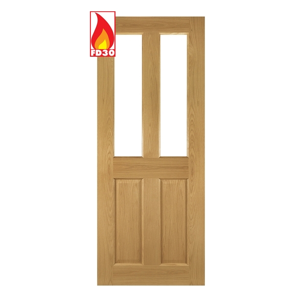 45NM4GF/DX686FSC • 1981 x 686 x 45mm [27] • Deanta Internal Oak Bury Prefinished FD30 Fire Door [Clear Glazed]