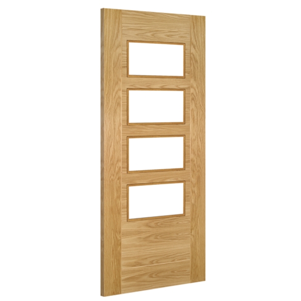 35UK16G4X686FSC • 1981 x 686 x 35mm [27] • Deanta Internal Oak Seville 4 Light Prefinished Door [Clear Glazed]