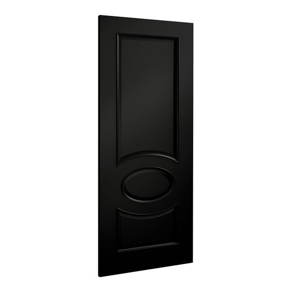 The Deanta Clarendon prefinished black internal door combines Victorian-inspired detailing with a modern black finish. Its distinctive triple-panel layout features a small lower panel, a central oval panel, and a larger upper panel, with an optional glazed top panel to allow natural light to flow between rooms. The smooth black surface ensures a flawless, ready-to-fit finish.