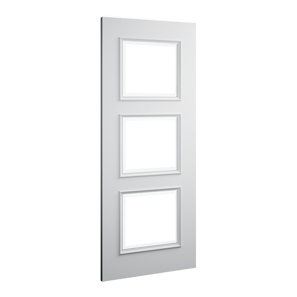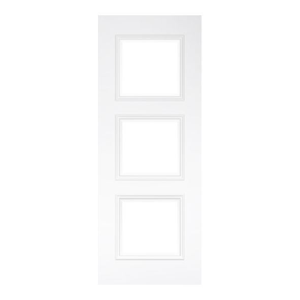 The Deanta Trinity White Primed door with glass blends a modern aesthetic with practical light flow. Featuring three vertically aligned glazed square panels framed by crisp white primed timber, it allows natural light to move through your home while maintaining a clean, structured appearance. The smooth primed surface is ready for a final topcoat to complete your look.