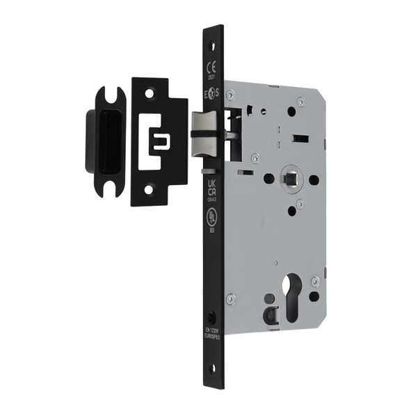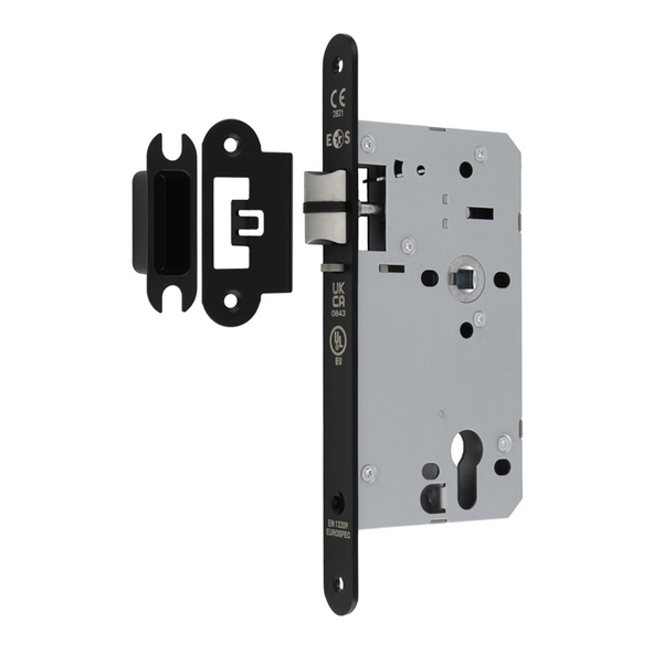 Operation : The latch bolt is withdrawn by a lever or knob handle internally and by a euro cylinder (not included) externally Locks automatically upon closing with the latch bolt being deadlocked by the anti-thrust mechanism