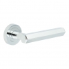The Hex lever on rose is a stylish and modern door handle with a hexagonal shaped handle, sold in pairs.