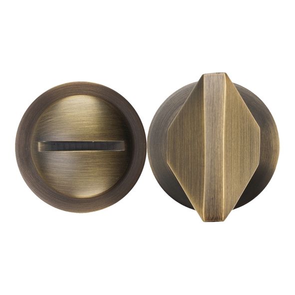 RT004-MINI-AB • Antique Brass • Rosso Tecnica Minimal Round Bathroom Turn With Release