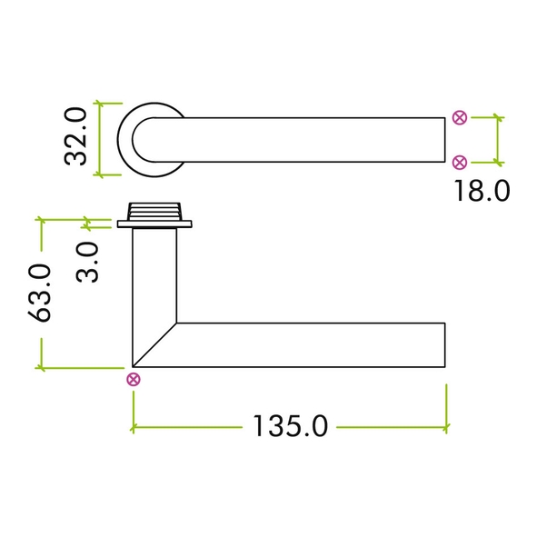 Dimensions : 32mm Ø x 3mm rose • Suitable for 35 to 54mm thick doors