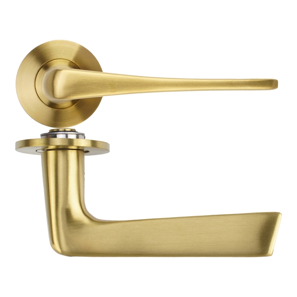 RT020-SLIM-PVDSB • PVD Satin Brass • Rosso Tecnica Como Levers On Slim Round Roses