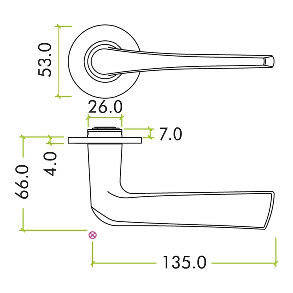 Dimensions : 53mm Ø x 4mm push on rose • Suitable for 35 to 54mm thick doors