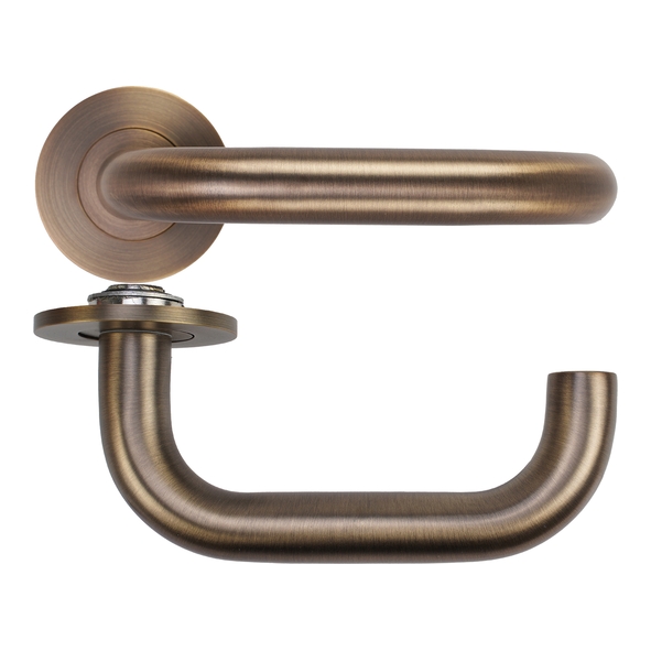 RT030-SLIM-AB • Antique Brass • Rosso Tecnica Maggoire Levers On Slim Round Roses