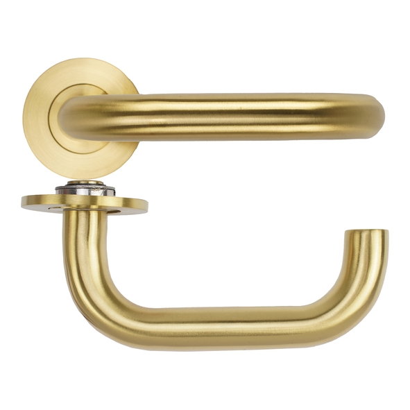 RT030-SLIM-PVDSB • PVD Satin Brass • Rosso Tecnica Maggoire Levers On Slim Round Roses