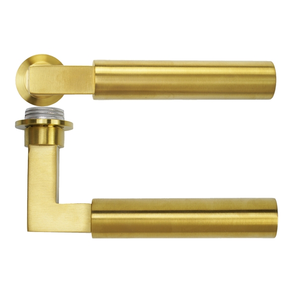 RT050-MINI-PVDSB • PVD Satin Brass • Rosso Tecnica Garda Levers On Minimal Round Roses