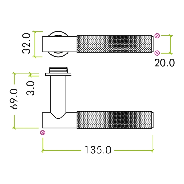 Dimensions : 32mm Ø x 3mm rose • Suitable for 35 to 54mm thick doors