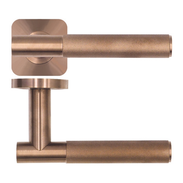 RT060-SQ-PVDBZ • PVD Satin Bronze • Rosso Tecnica Orta Knurled Levers On Squircle Roses