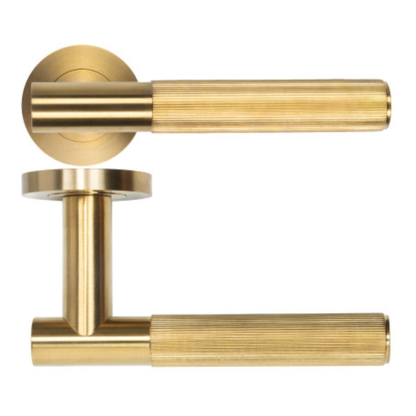 RT070-PVDSB • PVD Satin Brass • Rosso Tecnica Idro Levers On Standard Round Roses