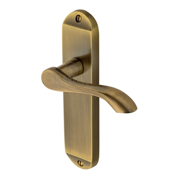SC-7360-AZ • Long Plate Latch • Antique Brass • Sorrento Aurora Levers On Backplates