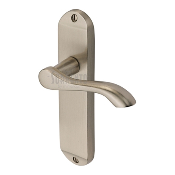 SC-7360-SNZ • Long Plate Latch • Satin Nickel • Sorrento Aurora Levers On Backplates