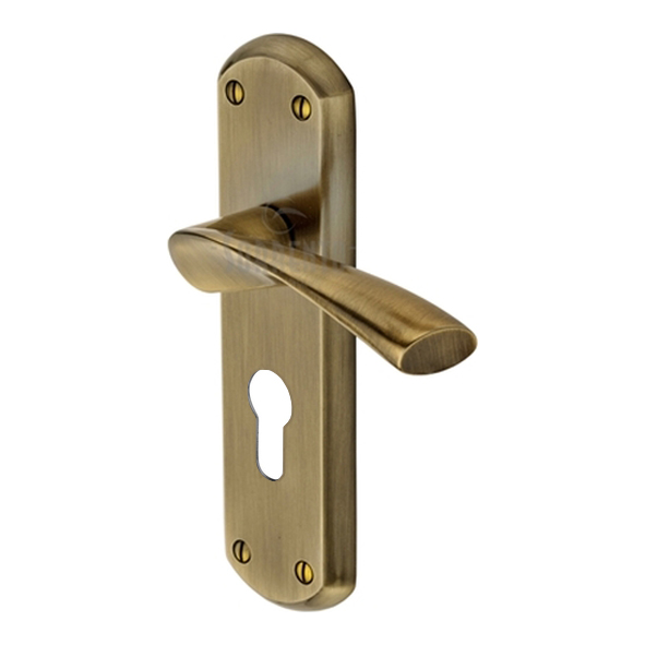 SC-7648-AZ • Euro Cylinder [47.5mm] • Antique Brass • Sorrento Atlanta Levers On Backplates