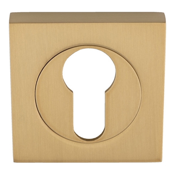 SZM001SQSB • Satin Brass • Serozzetta Round Square Cylinder Escutcheon