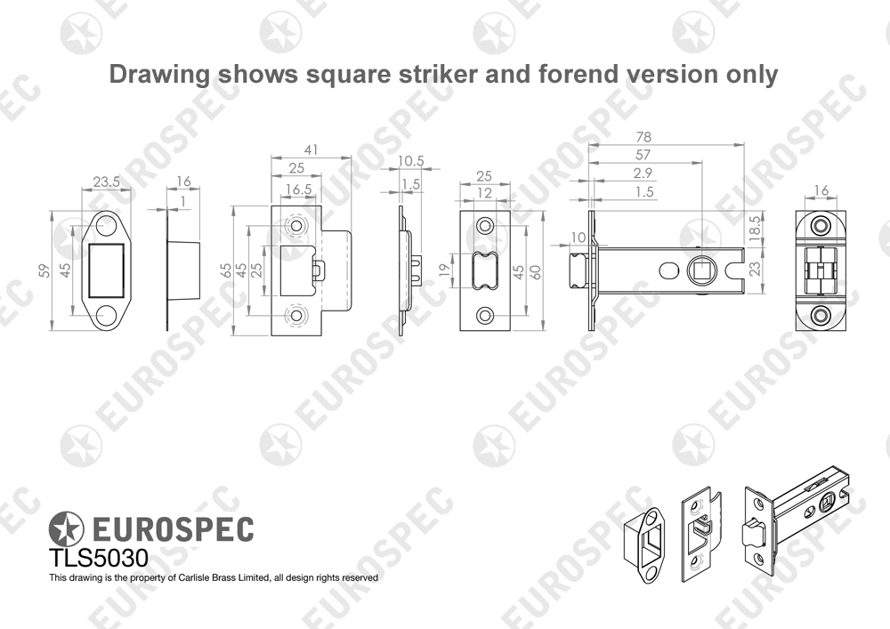 Dimensions : Backset 57mm Case Depth 78mm Case height 23mm Case width 16mm Forend length 60mm Forend Width 25mm
